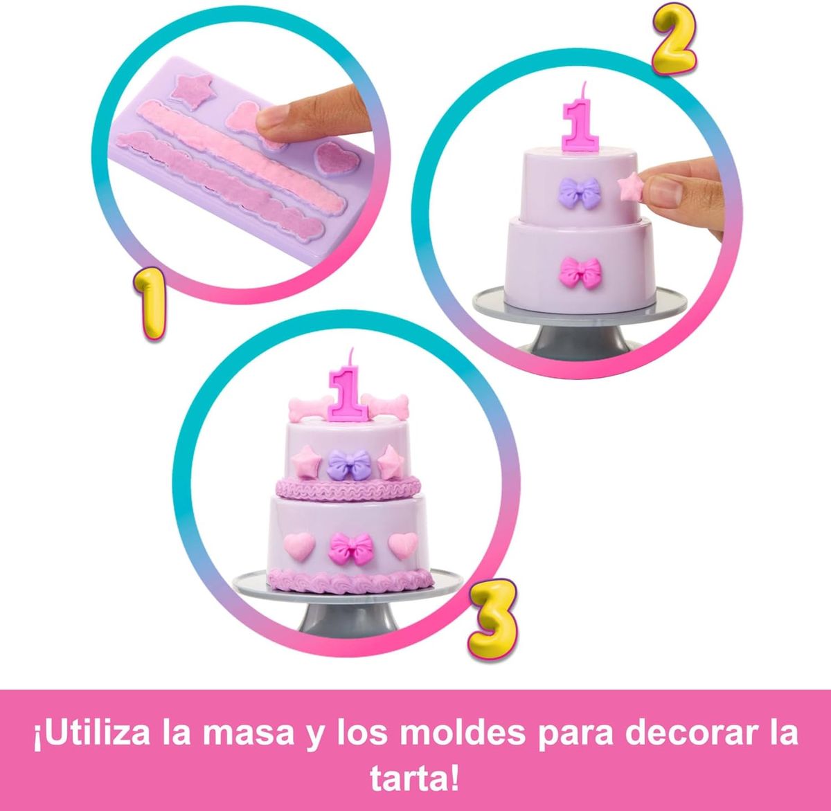 Poupée Barbie Fête Révélation Violette Collection Anniversaire Animal de Compagnie, Poupée Nœuds d'Anniversaire et Accessoires. Coffret contenant 10 surprises, dont une fonction de changement de couleur et de décoration de gâteau. Ouvrez le coffret Nœuds d'Anniversaire pour découvrir une poupée mannequin blonde aux mèches roses et à la silhouette longiligne, vêtue d'une robe rose ornée de nœuds argentés métallisés et de bottes blanches ! La collection Barbie Fête Fête Animal de Compagnie transforme l'ouverture des coffrets en une véritable fête, avec 4 cadeaux superposés qui cachent une poupée, un animal de compagnie et bien plus encore. Ouvrez le coffret Nœuds d'Anniversaire pour découvrir une poupée mannequin blonde aux mèches roses et à la silhouette longiligne, vêtue d'une robe rose ornée de nœuds argentés métallisés et de bottes blanches ! Continuez à ouvrir les « cadeaux » mystères pour découvrir l'invité d'honneur : un adorable petit chiot qui porte également un tutu à sa taille ! Les petits amoureux des animaux et les enfants créatifs peuvent utiliser la pâte à modeler pour mélanger et préparer, le moule, la cuillère en forme de cœur et la spatule pour réaliser et décorer le gâteau à deux étages. C'est une façon amusante de stimuler les sens et l'expression ! Le plaisir continue avec la transformation qui change de couleur. Utilisez de l'eau glacée et de l'eau chaude pour transformer le visage de Barbie avec des détails festifs et scintillants, et faites « ouvrir » et « fermer » les yeux du mini-animal à l'infini. Avec une fête dans chaque boîte, les poupées Barbie Party Unboxed Pet Birthday Series sont un cadeau idéal pour les filles et les garçons à partir de 3 ans, surtout ceux qui adorent les fêtes et les surprises. Contient 1 poupée Barbie, 1 robe, 1 paire de chaussures, 1 mini-animal, 1 sachet de pâte à modeler, 1 gâteau, 1 cuillère, 1 spatule, 1 moule et 1 accessoire pour animal. Il y a trois poupées à collectionner : Birthday Bows, Sparkling Hearts et Party Stars. Collectionnez toutes les tenues pour continuer à profiter des surprises de la fête. Les poupées sont vendues séparément, selon les disponibilités. La poupée ne tient pas debout toute seule. Matière : Plastique Âge recommandé par le fabricant : 3 ans et plus. AVERTISSEMENT : Ne convient pas aux enfants de moins de 3 ans. Contient de petites pièces pouvant être avalées et provoquer un étouffement. Tenir hors de portée des enfants de moins de 3 ans. À utiliser sous la surveillance directe d'un adulte. Retirer l'emballage et les attaches avant de donner le jouet à l'enfant. AVERTISSEMENT : Protéger les surfaces de jeu avant utilisation. Nettoyer, rincer et sécher toutes les pièces avant de ranger le jouet. Ce produit peut tacher les tissus et autres surfaces. Éviter tout contact avec les tapis, moquettes, vêtements, murs et meubles. En cas de taches, utiliser de l'eau chaude savonneuse.