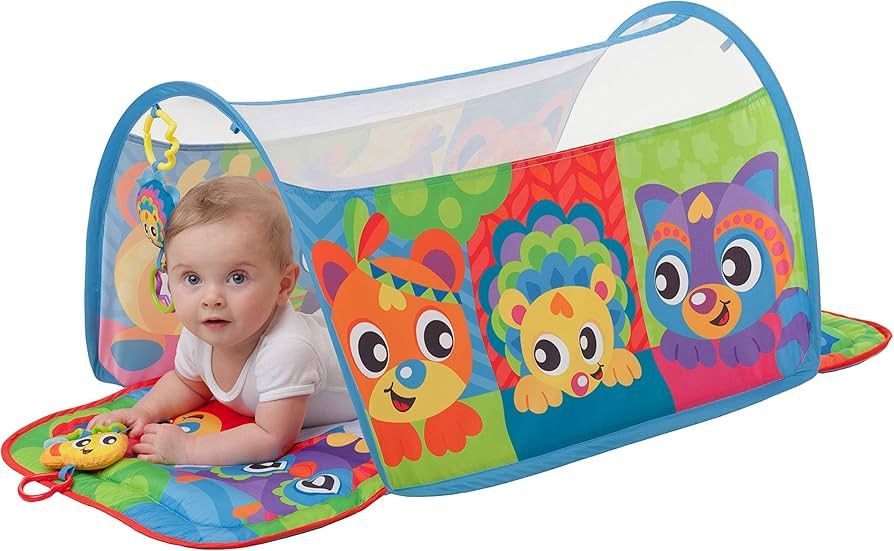 Le tapis d'éveil tunnel abeille Playgro est un accessoire de jeu fabriqué à partir de matériaux résistants et durables, offrant aux bébés de multiples façons de s'amuser avec la petite abeille. Il propose plusieurs options de jeu : jouer sur le ventre en rampant dans le tunnel, sur le dos en jouant avec les jouets suspendus, ou assis sans le tunnel, en utilisant simplement le tapis. Le tapis d'éveil tunnel abeille Playgro est conçu pour éveiller la curiosité de bébé et stimuler ses sens. Ce jouet sans BPA est très divertissant, éveille l'intérêt, offre une stimulation visuelle et motrice, et est très facile à transporter. Il présente des couleurs vives et un tunnel en filet amovible.
