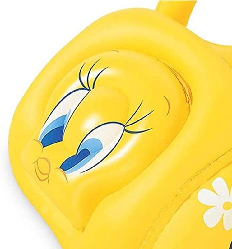 Belle voiture gonflable Titi le canarino avec 50 balles colorées incluses. Idéal aussi bien dans vos jardins qu'à la mer. Partie avant rabattable de la voiture. Dimensions : 140 x 86 x 76 cm.